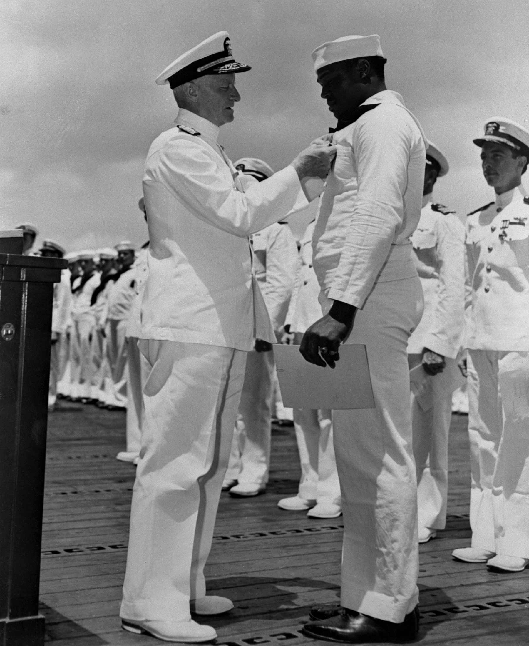 The first African American to be awarded the Navy Cross, Miller served bravely on one of America's darkest days - Dec. 7, 1941 - embodying the notion of going “above and beyond the call of duty.” After torpedoes ripped through the hull of USS West Virginia, Miller first carried his badly injured captain to safety before manning anti-aircraft guns and leading fellow soldiers through oil and water to safety. Though he was killed in action two years later, Miller went on to become an icon for black Americans during World War II and an inspiration to servicemen for decades to come.