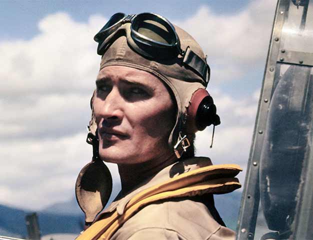 Bong downed 40 enemy planes in the Pacific theater, including eight as a gunnery instructor, for which he received the Medal of Honor at age 24.