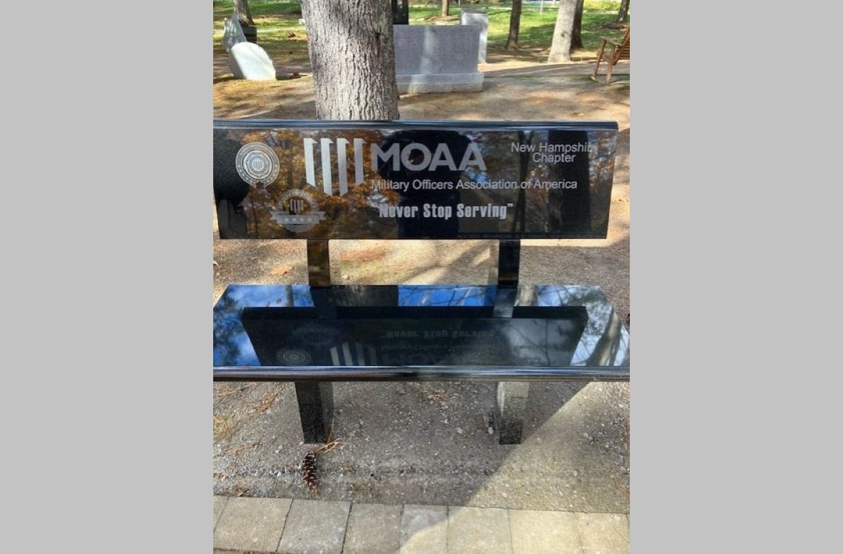 The memorial bench adds MOAA to the veterans’ organizations represented at New Hampshire State Veterans Cemetery.