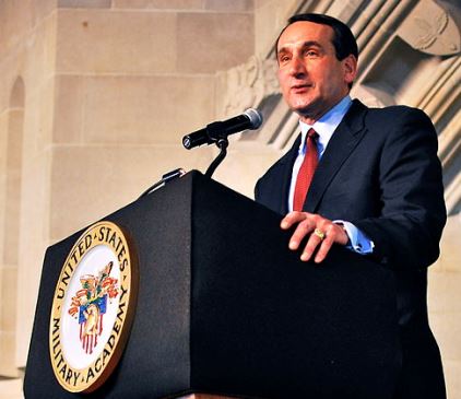Coach K speaking in 2010 to West Point cadets, via Wiki Commons