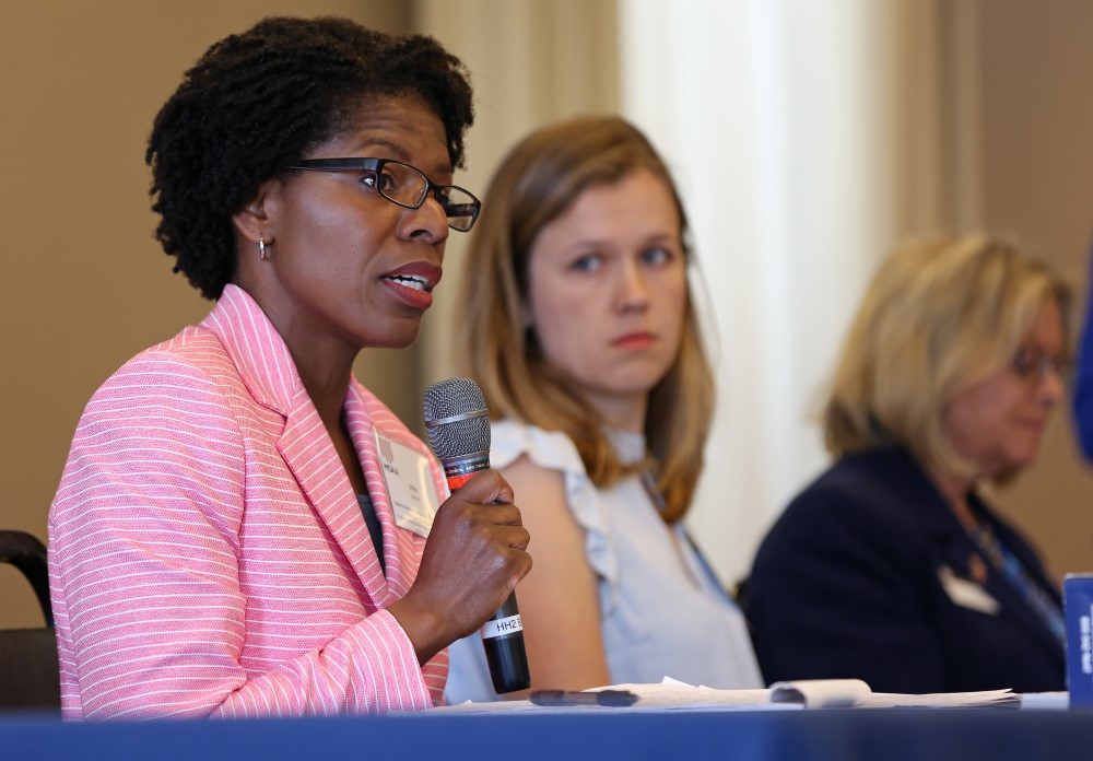 Erika R. Slaton, with the Office of the Deputy Assistant Secretary of Defense, speaks during the National Guard and Reserve Families in the Community panel at the National Guard and Reserve Family Forum in Washington, D.C. on June 26. (Jennifer Milbrett for MOAA)