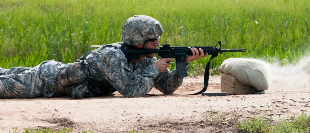 A paratrooper with the 82nd Airborne Division takes part in the weapon qualification phase of the Towle/Megellas Competition on Fort Bragg, N.C., in 2013. The four-day contest pays tribute to World War II veterans James “Maggie” Megellas and Pvt. John R. Towle, who both served in the 82nd. (Staff Sgt. Mary S. Katzenberger/Army)