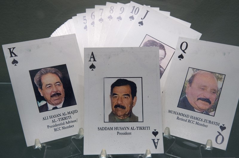 It's a strategy that the Army employed in the first Gulf War, with printed cards that depicted enemy weapons and aircraft. In 2003, Coalition forces in Iraq famously printed decks to show the 55 "most wanted" in the Iraqi regime. Saddam Hussein was featured on the Ace of Spades.