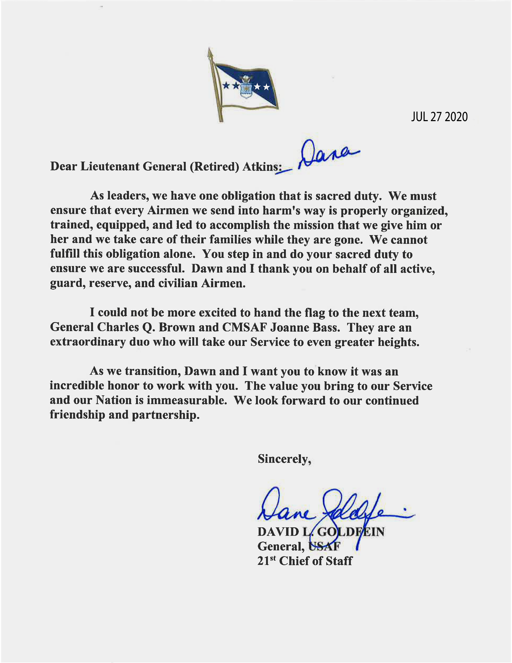 [RELATED: Gen. Goldfein Shares a Special Note to MOAA and Its Members]