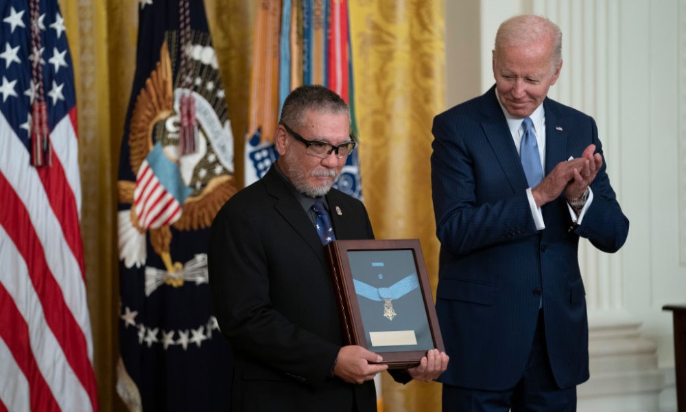 "Today, his memory lives on in the lives he saved, in the legend of his fearlessness and the hearts of the family he left behind," Biden said. "Your family's sacrificed so much for our country. I know that no award can ever make up for the loss of your father, for not having him there as you grew up. But I hope today, you take some pride and comfort in knowing his valor is finally receiving the full recognition it's always deserved."
