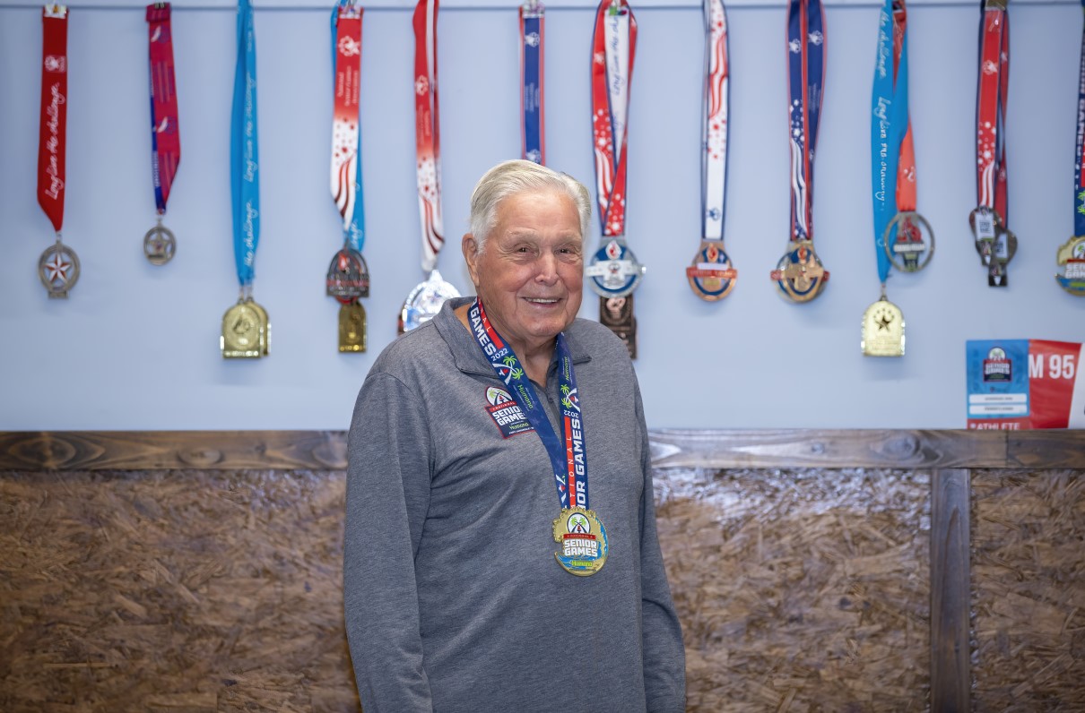 He attributes his longevity to his exercise routine — and, jokingly, his success at the games to his longevity. “My motto is, ‘If you can’t beat them, outlive them.’”