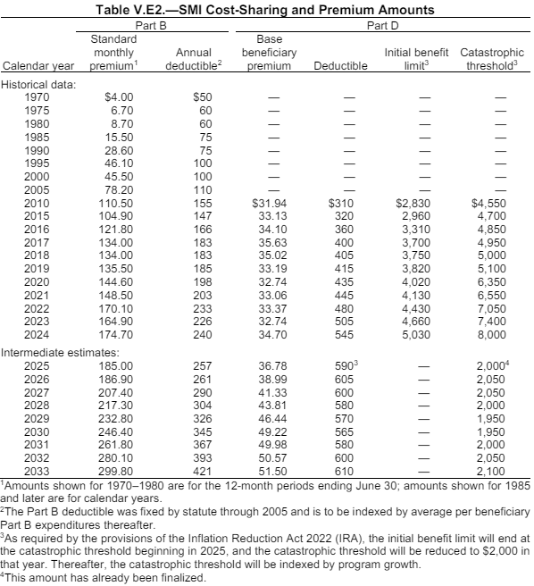 Beneficiaries would see a projected 5.9% increase in their standard premium for 2025, moving from $174.70 this year to an estimated $185 next year, per the report. After a smaller projected increase to $186.90 in 2026, the estimated rate rises more than $100 over the next seven years, to $299.80 in 2033.