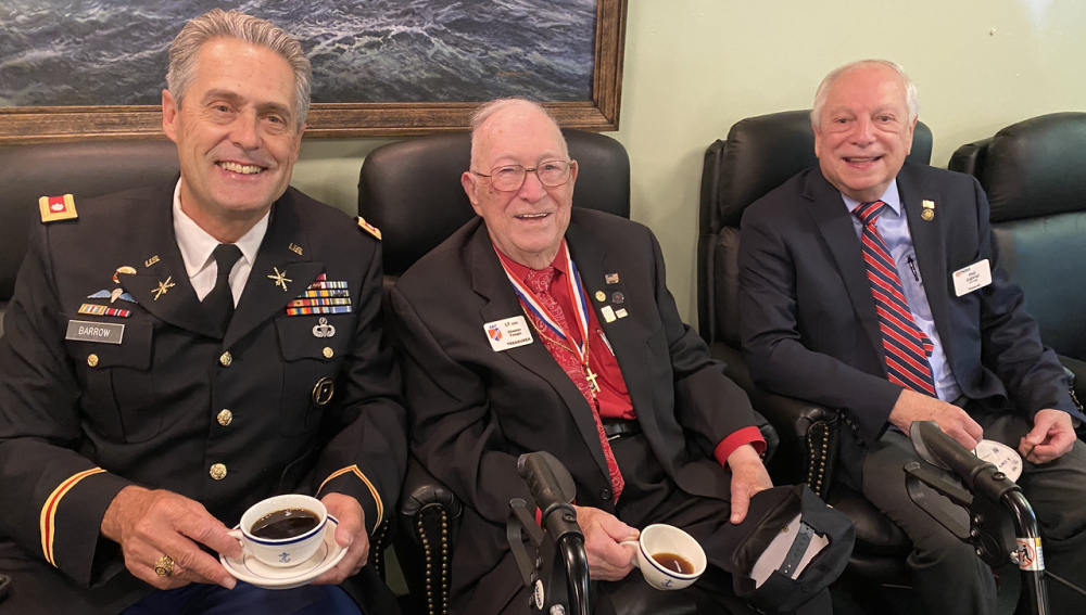 Former 1st Lt. Chester Feagin, ARNG, (center) served during World War II and the Korean War and stays active with work and volunteering. (Photo courtesy of Fran Barber)