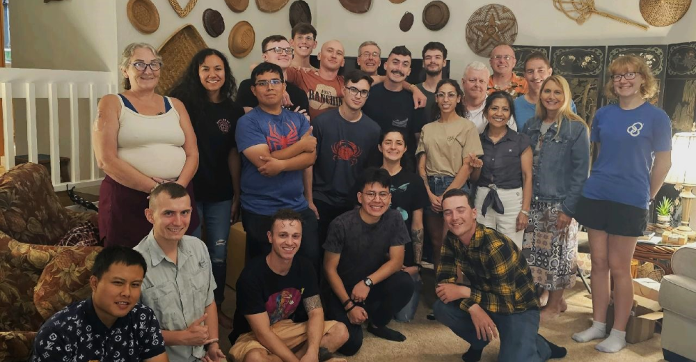 Col. John Good, USAF (Ret), (center back row) poses with guests at a Home Port Hospitality House for dinner and Bible study. (Photo courtesy of John Good)