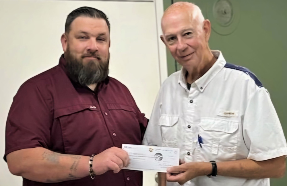 Col. Robin Ritchie, USA (Ret), presents a 2024 MOAA grant to the executive director of The Warriors Refuge. (Photo courtesy of Robin Ritchie)