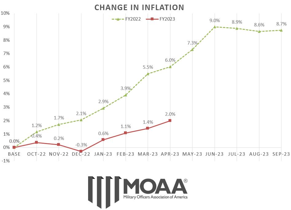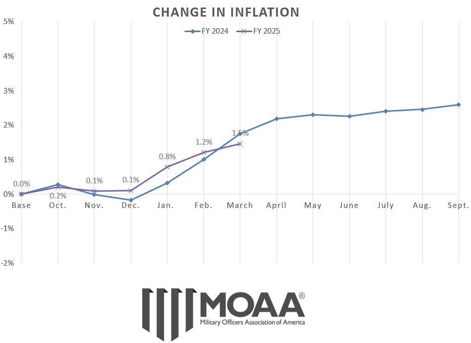 Welcome to MOAA’s COLA Watch page, where you’ll find a monthly update on the inflation figures used to set the cost-of-living adjustment (COLA) for payments received by military retirees, disabled veterans, Social Security beneficiaries, and many others receiving federal compensation.
